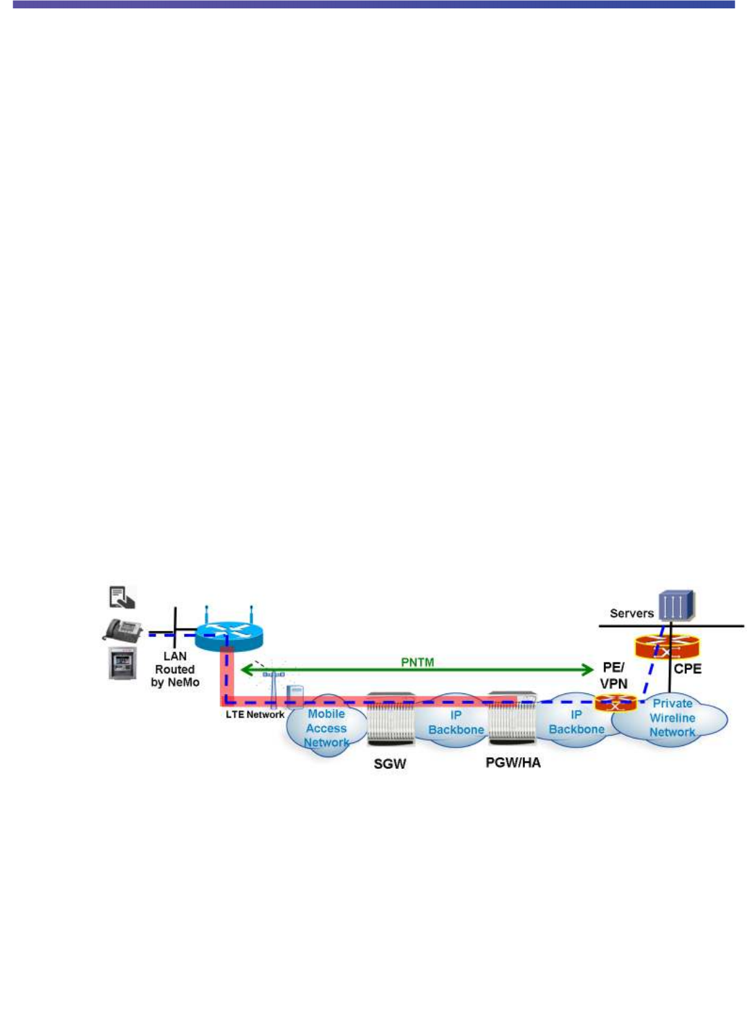 DMNR integrates wireless and wireline networks by leveraging Mobile IP Network Mobility (NeMo)