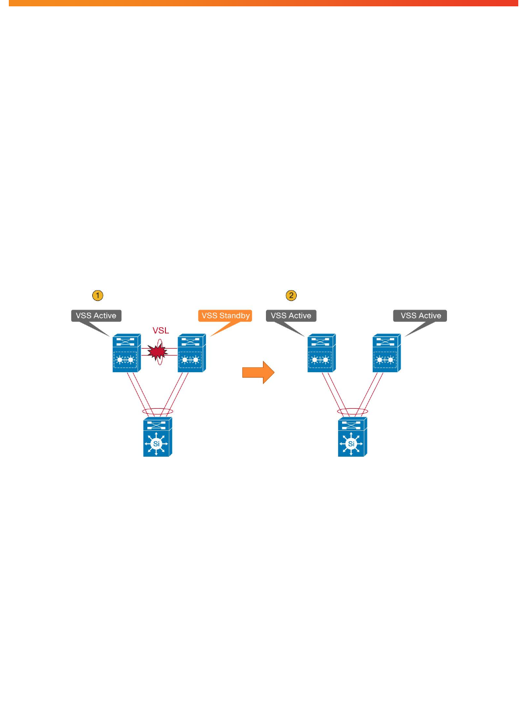 active virtual switch chassis as failed and transitions to active virtual switch state through an SSO switchover. This