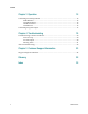 Contents Chapter 3 Operation 15 Confirming Normal Operation ............................................................................................ 16 PWR Indicator ........................................................................................................... 16 ALARM Indicator ..................................................................................................... 16 VIDEO Indicators...........................................................................................