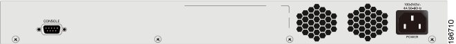 The power port and console port are located on the back panel of the