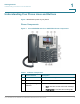 1 Getting Started Understanding Your Phone Lines and Buttons Table 1 IP Phone Components # Phone Feature Description 4 IP phone screen Your phone might vary, but typically it displays: 5 Line keys • Date and time • Phone station name • Line extensions • Softkey options • Startup logo, screen saver, background photo, and photo album Phone line status: • Green (steady): Line is in use. • Green (blinking): There is an incoming call. • Red (blinking): Line is on hold.