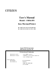 CITIZEN User's Manual Model : CBM-270 Line Thermal Printer Rev 1.00 Newly issued on 07.Oct.1998 Rev 2.00 Newly issued on 24.Nov.1998 Japan CBM Corporation Information Systems Div. Declaration of Conformity Manufacturer’s Name : Manufacturer’s Address Declare the Product Product Name Model Number(s) : Japan CBM Corporation : CBM Bldg., 5-68-10, Nakano, Nakano-ku Tokyo, 164-0001, Japan Line Thermal Printer CBM-270 (CBM-270R, CBM-270P) (S.No.