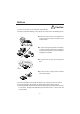 Installation and Removal of the Battery Pack n Installing Insert the charged battery pack into the under side of the printer. 1 As shown in the illustration insert the battery pack and slide it in the direction of the arrow. n Removal of Battery 1 Slide the battery pack release lever in the direction of the arrow. 2 1 2 Remove the battery pack by sliding it just a little in the direction of the arrow. 3 3 Pull the battery pack up and out of the printer.