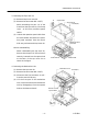 CBM1000 Service Manual 3. Removing the Top Cover SA (1) Remove the printer cover SA. (2) Remove the two screws M3 × 6 (ST). B Square Hole While unhooking the part “B” of the Top Cover SA M3×6 (ST) frame from the top cover SA, lift the top cover. At this time, avoid the power switch. (3) Unhook the operation panel cable from the cable holder, disconnect the operation panel connector from the control Operation Panel Connector PCB assy, and remove the top cover SA.