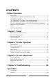 CONTENTS Before Operation Introduction -------------------------------------------------------------------------- 3 COMPLIANCE STATEMENT FOR EUROPEAN USERS ----------------------------- 4 GS MARK STATEMENT -------------------------------------------------------------- 4 FCC COMPLIANCE STATEMENT FOR AMERICAN USERS ----------------------- 4 EMI COMPLIANCE STATEMENT FOR CANADIAN USERS ------------------------ 5 ETAT DE CONFORMITE EMI A L’USAGE DES UTILISATEURS CANADIENS ----- 5 Important Safety Instructions --