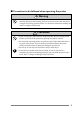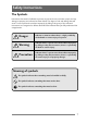 Safety Instructions 7 Precautions when using the battery pack Danger • Do not use any battery pack other than the specified type. Using a type other than the specified type may cause an explosion. • Use only the specialized charger. • Do not take it apart or modify it. • Do not short circuit the terminals. • Do not use, charge, or leave the battery pack near fire, out in the hot sun, or in any other hot place. • Do not place it in a fire. • Do not hit or drop the battery pack.