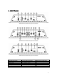 3. CONTROLS APX1301E controls and input connections APX4241E controls and input connections APX2121E controls and input connections 1. RCA input jacks 2. Front RCA input jacks 3. Rear RCA input jacks 4. Gain control 5. Front gain control 6. Rear gain control 7. Bass boost control 8. Speaker level inputs 9. Front speaker level inputs 10. Rear speaker level inputs 11. Frequency control 12. X-Over mode switch 13. Front frequency control 14. Front X-Over mode switch 15. Rear frequency control 16.