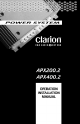 INTRODUCTION The Clarion APX200.2 and APX400.2 are full-featured two-channel amplifiers. incorporating the following features: • Full frequency response with low distrotion and exceptional signal to noise performance • Advanced circuit design that features bridgeable and mixed mode operation for use in various systems, including those with satellite speakers and/or subwoofers • Variable high-pass/low-pass electronic crossover with a 12dB per octave slope and full adjustable range (from 55Hz to 5.