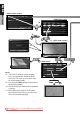 English (Radio mode screen) Owner’s manual (FUNCTION menu) ∗8 ∗9 ∗11 (DVD mode screen) ∗10 (SUB menu) Notes: ∗8: The FUNCTION menu screen displays icons for components connected to the main unit. The icons serve as touch keys for selecting play modes. ∗9: Pressing the [FUNC] button changes to the following play modes. ∗10: Screen during DVD mode when automobile is moving. ∗11: When displaying images in DVD mode, touching the screen surface will cause the menu screen to be displayed.