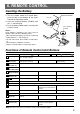 6. REMOTE CONTROL Inserting the Battery Remote Control Unit Rear side English 1) Turn the remote control unit upside down, push the lock in the direction of the arrow, and pull out the battery holder. 2) Insert the enclosed battery (CR2025) with the “+” side facing up. 3) Push the battery holder back in securely until a click is heard. 1) Enclosed battery (CR2025) Lock Notes: C R2025 Owner’s Guide Using batteries improperly can cause them to explode.