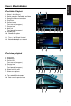 Source Media Modes English When you select the desired source mode (for example, the DVD Video, USB or iPod mode), the following screen will appear. During playback, touch the bottom half of screen to show operation bar. DVD Video mode 1. Play/Pause 2. Show cursor keys in DVD title menu 3. Previous chapter Fast backward (long press) 4. Progress bar 5. Next chapter Fast forward (long press) 6. Root menu Root Title (long press) 7. Show other options 8. Repeat play 9. Select audio language 10.