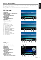 Start using Clarion Mobile Map English Map screen 12. To enlarge this small map and open the Map screen, tap [Show Map] button 13. Zooming in and out 14. Tilting up and down 15. Rotating left and right 16. 2D or 3D view 17. Compass in 2D map view mode 18. Compass in 3D map view mode 19. Location information 20. Return to normal navigation 21. Select destination Quick menu 22. The Quick menu is a selection of controls and functions that are frequently needed during navigation.