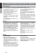 Nederlands 3. VOORZORGSMAATREGELEN BIJ GEBRUIK Bedieningspaneel Neem om de levensduur te verlengen de volgende voorzorgsmaatregelen in acht. Gebruikershandleiding • Het bedieningspaneel werkt naar behoren bij een temperatuur van 0 tot 60 ˚C. • Vermijd contact met vloeistoffen uit drankjes, paraplu's enzovoort. Dit kan het interne schakelsysteem beschadigen. • Demonteer of bewerk de installatie niet. Dit kan schade veroorzaken.