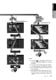English Basic Operations Opening and turning the display WARNING Owner’s manual • To prevent the battery from going dead, operate this unit with the engine running, if possible. • When the liquid crystal panel is operating, be careful not to get your hand or finger caught between the panel and main unit or the instrument panel of the car. Standing up the liquid crystal panel Adjusting the angel, etc.