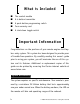 Table of Contents limited lifetime consumer warranty . . . . . . . . . . . . . . . . . . . . . . . . . . . . . . . . i System Maintenance . . . . . . . . . . . . . . . . . . . . . . . . . . . . . . . . . . . . . . . . . . . . 2 What is Included . . . . . . . . . . . . . . . . . . . . . . . . . . . . . . . . . . . . . . . . . . 2 Important Information . . . . . . . . . . . . . . . . . . . . . . . . . . . . . . . . . . . . . . . . . 2 FCC/ID Notice . . . . . . . . . . . . . . . . . . . . . . . . . . . . . .