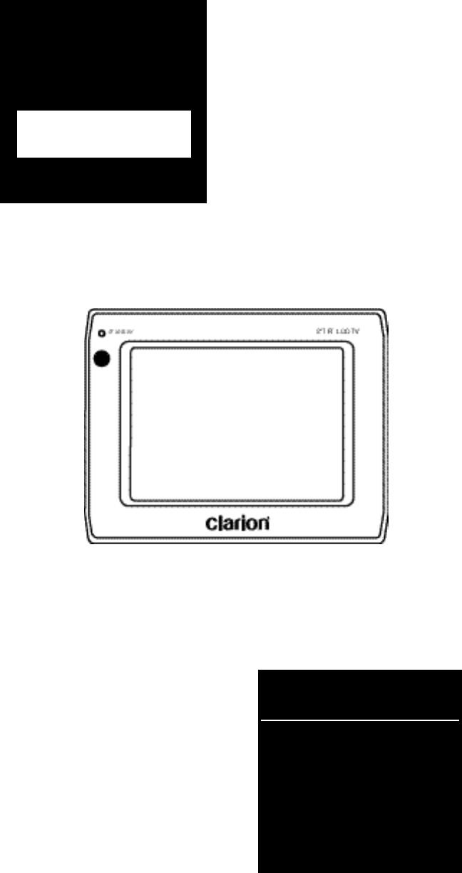INTRODUCTION The Clarion TVS5091 is a full-featured 5" LCD Color TV. It can be used as a stand-alone unit or integrated into a mobile multimedia system. ABOUT THE MANUAL AND WARRANTY To start enjoying your new Clarion TVS5091, please read the instructions listed in this manual. Keep all instructions for future reference. Please fill out and send in the enclosed warranty card to protect your purchase and aid in warranty service. Also, save your original sales receipt as proof of purchase.