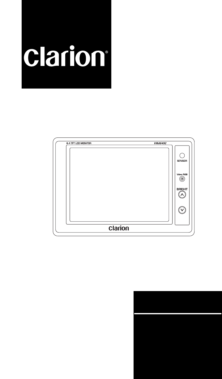 OWNER’S MANUAL WARNING! THE CLARION VMA6492 LCD MONITOR IS DESIGNED FOR REAR SEAT PASSENGER VIEWING ONLY. THIS PRODUCT IS NOT INTENDED FOR VIEWING BY THE DRIVER WHILE THE VEHICLE IS IN MOTION SINCE SUCH USE MAY DISTRACT THE DRIVER OR INTERFERE WITH THE DRIVER’S SAFE OPERATION OF THE VEHICLE AND MAY RESULT IN SERIOUS INJURY OR DEATH. SUCH USE MAY ALSO VIOLATE STATE LAW.