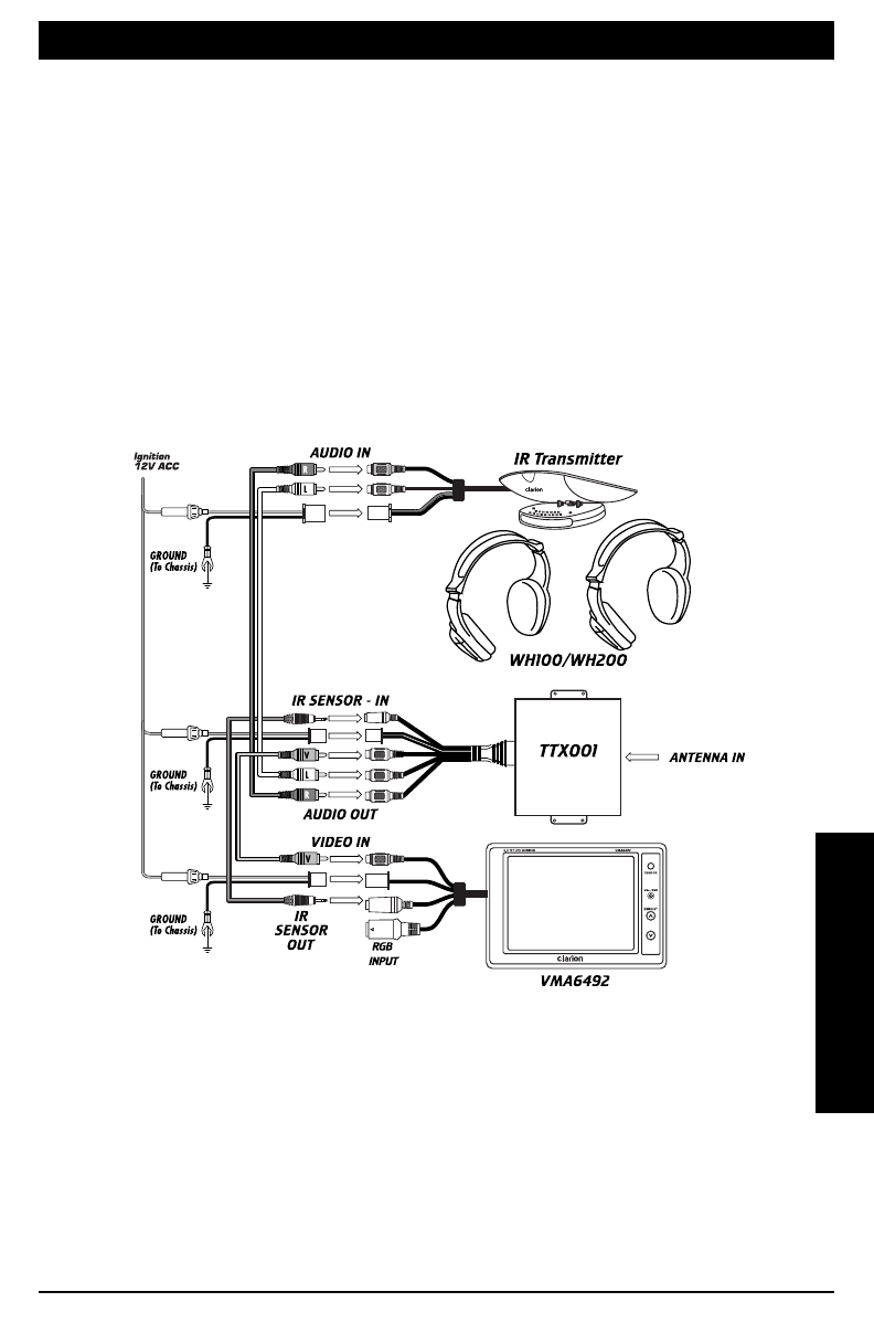 4. Run the IR extension, video RCA, and power wires to the TTX001 location