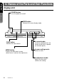 English 6. CONNECTION OF EXTERNAL EQUIPMENT Connection Example Rear view camera (back-eye camera), car video player or video camera Video POWER DISPLAY UNIT Second monitor Expansion AV output RGB TV tuner, car video player or video camera Notes: • For the connection method, refer to page 29 of the “Installation / Wire Connection Manual”. • When a video camera monitor is connected to the control box and a howling noise is heard, one of the following countermeasures should be taken.