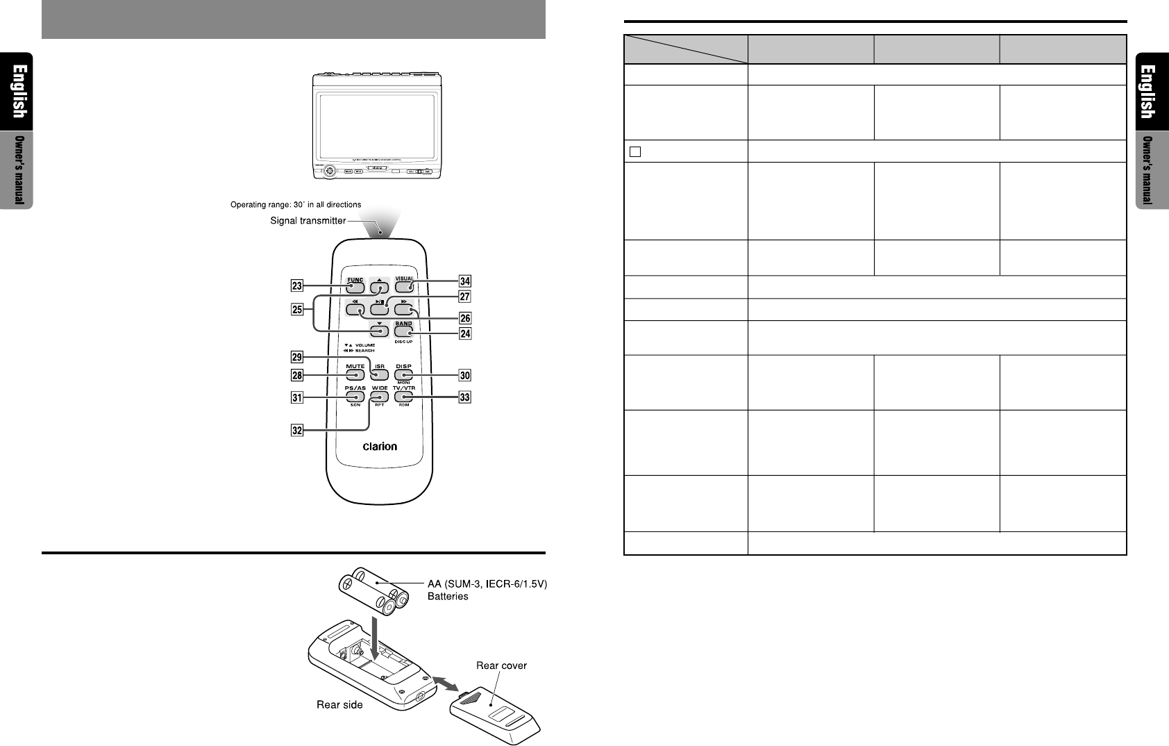 • Some of the corresponding buttons on the main unit and remote control unit have different functions.