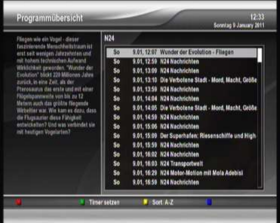 EPG Liste aufrufen.
