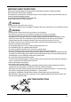 SOMMAIRE Consignes de sécurité importantes ........................................................... 15 Consignes de mise à la masse...................................................................16 Introduction.................................................................................................17 Pièces et entretien..................................................................................... 17 Plaque signalétique ....................................................................