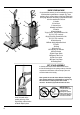 UTILISATION DE l’ASPIRATEUR 1. Retirez le cordon d’alimentation des crochets porte-cordon (2) situés à l’arrière de l’aspirateur. Faites pivoter le crochet inférieur afin de libérer le cordon. Déroulez tout le cordon d’alimentation. 2. Réglez la hauteur de la poignée en poussant le bouton de verrouillage de la poignée (4), puis tirez ou poussez la poignée jusqu’à atteindre une position d’utilisation confortable. 3. Placez le cordon sur le crochet de la poignée afin d’éviter tout frottement.