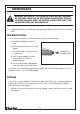OPERATING INSTRUCTIONS WARNING: ENSURE YOU READ, UNDERSTAND AND APPLY SAFETY INSTRUCTIONS BEFORE USE. 1. Push safety lever (mounted on the throttle lever) forward and depress throttle lever. • Allow tool to run up to full speed for a couple of seconds before offering disc to work piece. 2. Apply a steady, even pressure. Do not force. Too much pressure can cause disc to break and may even cause injury. NOTE: DO NOT allow tool to free run for an extended period of time as this will shorten its life.