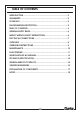 TABLE OF CONTENTS INTRODUCTION .................................................................................. 2 GUARANTEE ........................................................................................ 2 IN THE BOX ......................................................................................... 2 ENVIRONMENTAL PROTECTION ......................................................... 2 TABLE OF CONTENTS ..........................................................................