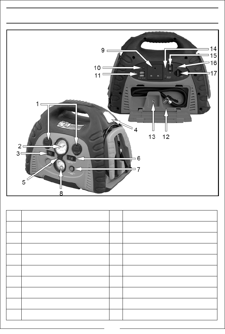 3 Air Compressor On/Off Switch 12 Air Compressor Hose Compartment