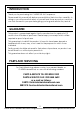 ASSEMBLY ATTACH THE WHEELS Use a suitable spanner to attach the wheels to the compressor. Use the washers and spring washer in the positions shown. ATTACH THE SUPPORT FOOT Insert the support foot into the position shown. FIT THE AIR FILTER 1. Remove the travel plug. 2. Screw the air filter into position. • The air filter must be hand tight only. 5 Parts & Service: 020 8988 7400 / E-mail: Parts@clarkeinternational.com or Service@clarkeinternational.