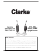 S12, S16 S12cc, S12PF Operating Instructions and Repair Parts List Upright Vacuum READ THIS BOOK This book has important information for the use and safe operation of this machine. Failure to read this book prior to operating or attempting any service or maintenance procedure to your Clarke machine could result in injury to you or to other personnel; damage to the machine or to other property could occur as well. You must have training in the operation of this machine before using it.