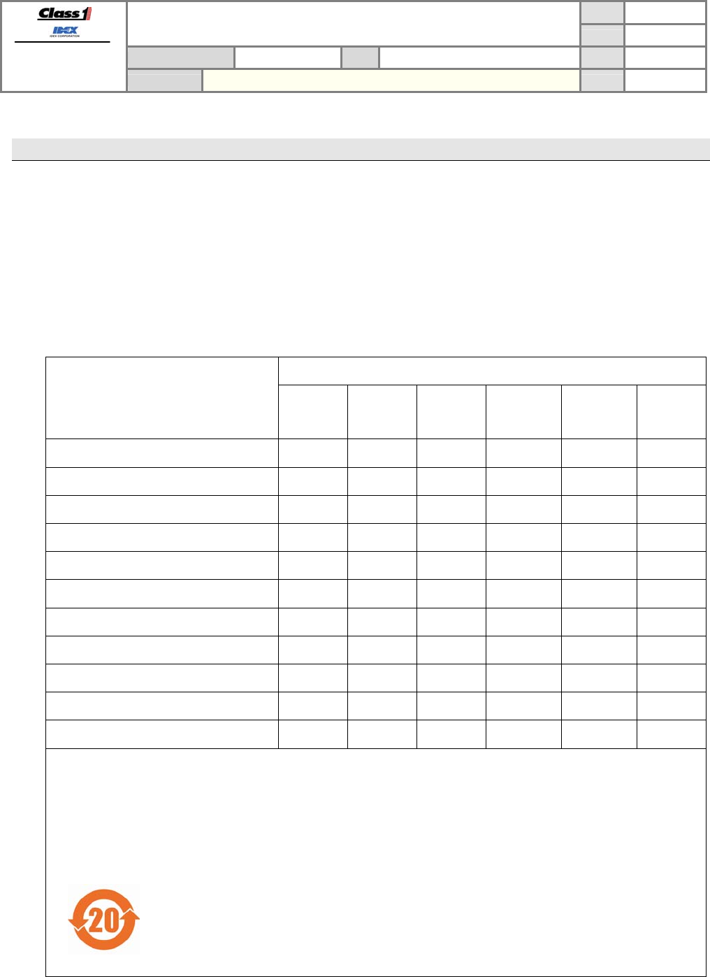 Class1 is committed to comply with the Management Methods on Control of Pollution from Electronic Information