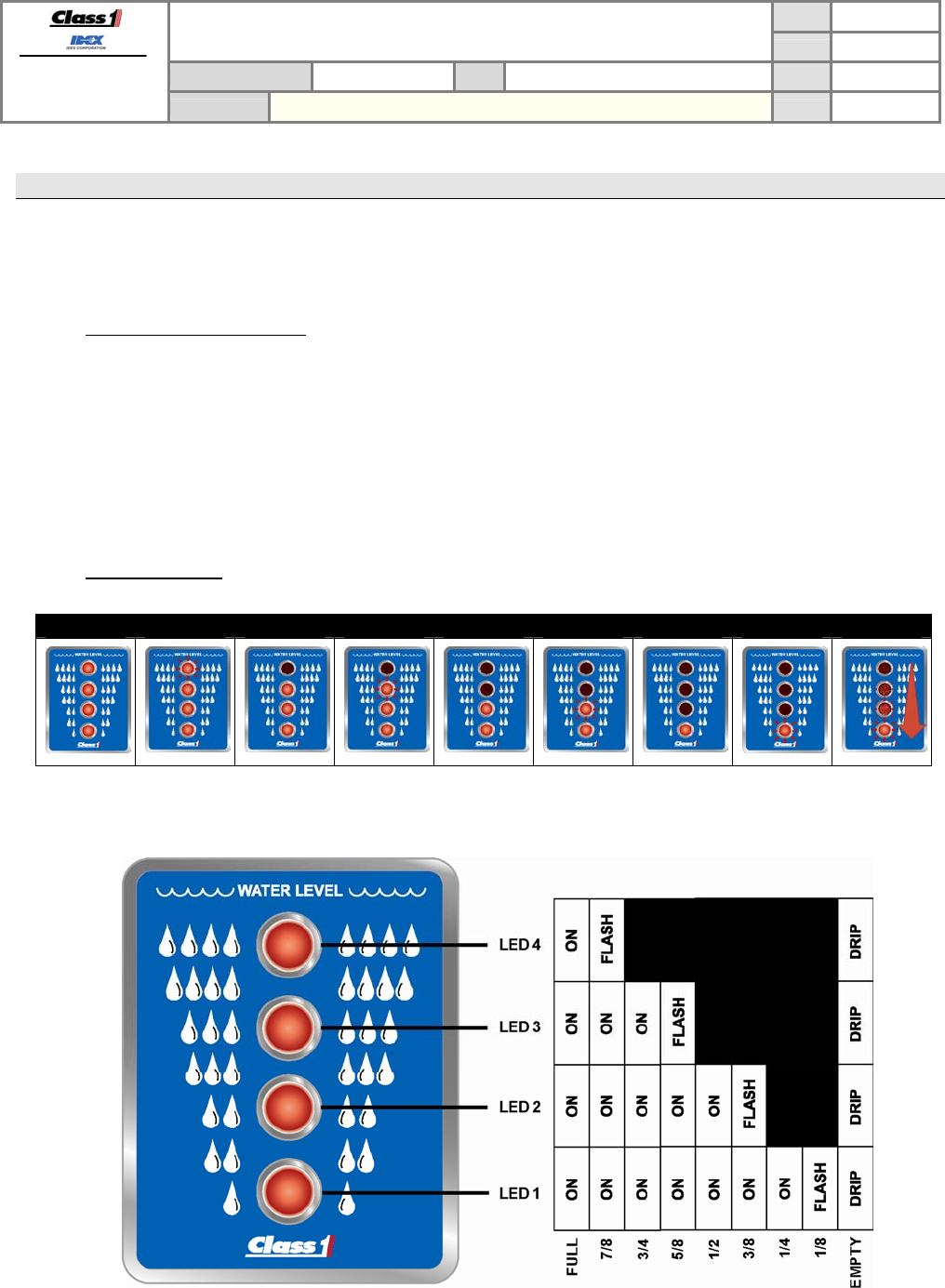 The ITL display uses the 4 LEDs to show the unit status (section 3.1.1), water level (section 3.1.2), and error