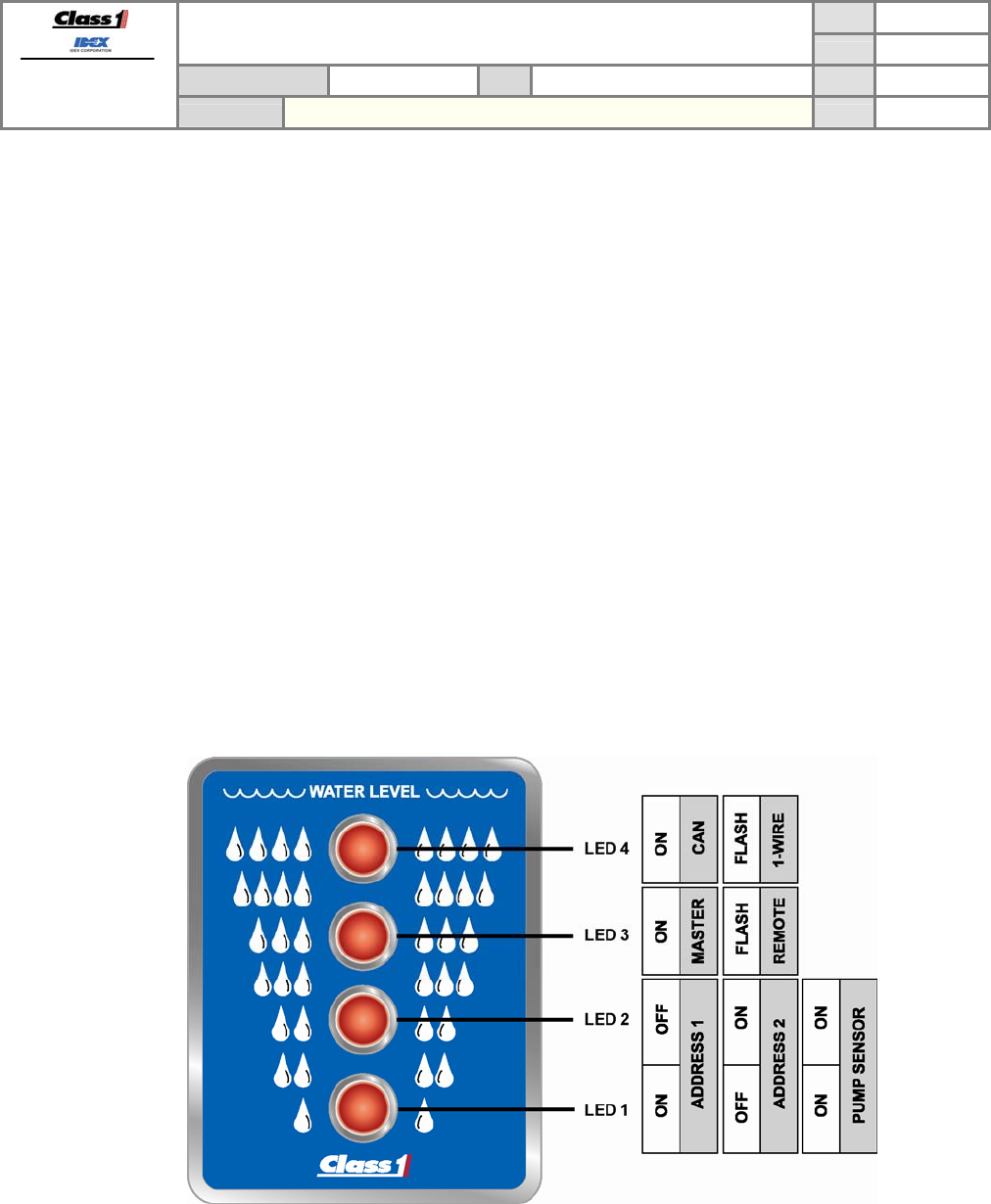 LED 4 shows the communication method, LED3 shows the display type, and LEDs 2 and 1 show the CAN