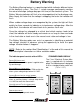 Battery Warning The Battery Warning feature is a special output which indicates different states of the electrical system. The Class 1 system manager continuously monitors the rate of discharge (voltage drop per unit time) of the electrical system. The Battery Warning indicator will flash at a rate proportional to the discharge rate. More simply, the faster that the voltage is dropping, the faster the indicator will flash.
