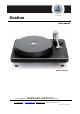 Ovation User manual 5. Technical data Construction: Resonance-optimised chassis, Recommended tonearm with magnetic bearing technology Operating speeds: 33 1/3, 45 and 78 RPM Drive unit (motor): Decoupled DC motor in chassis, resonance damping device Rumble: DIN IEC 98 by method A / 92 dB Bearing: Polished ceramic shaft in a sintered bronze bushing, magnetic bearing (CMB) Platter: Black coloured POM, 38 mm thickness Speed variation: +/ - 0.03 % Weight: Approximately 13.5 kg incl.