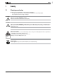 Safety 1 Safety 1.1 Warnings and notes Warning notes are identified by a signal word and a pictogram: • The signal word describes the severity and the probability of the impending danger. • The pictogram describes the type of danger. WARNING! Indicates a potentially hazardous situation which, if not avoided, could result in serious injury. 2009-08 CAUTION! Indicates a potentially hazardous situation which, if not avoided, may result in minor or moderate injury or property and environmental damage.