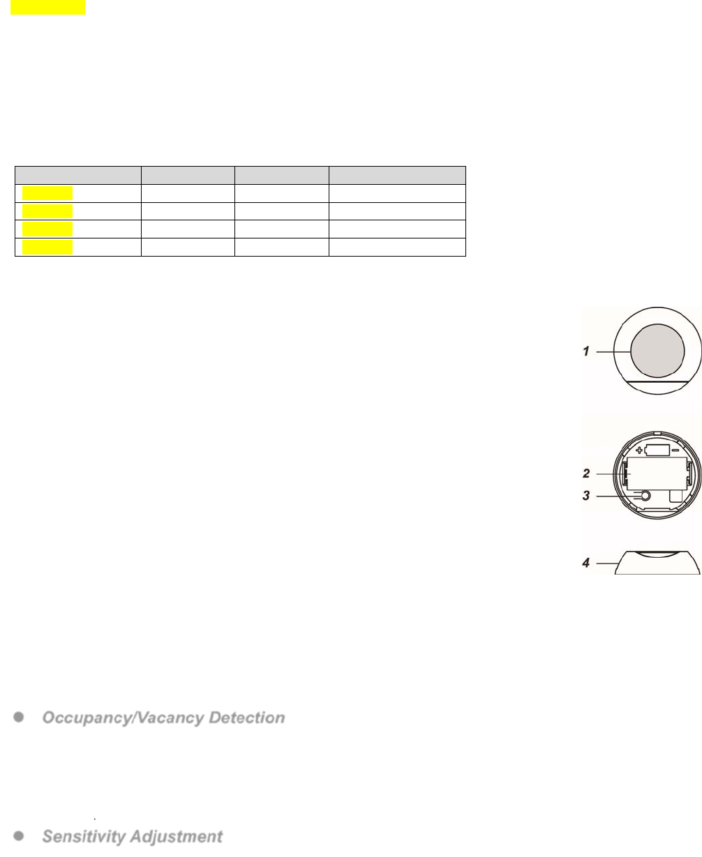 The PIR sensitivity can be adjusted to meet different requirements as either security or occupancy/vacancy sensor. Up to 5