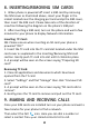 8. INSERTING/REMOVING SIM CARDS 1. When phone is powered off insert a SIM card by removing the SIM cover as illustrated above, insert your finger in the indent located near the charging port and unclip the SIM cover, then insert the SIM card. Please take note of the direction of insertion following the diagram on the phone’s SIM port. 2. After inserting a SIM card, turn on the phone and wait a few minutes for your phone to display Network information.