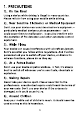 Table of Contents 1. PRECAUTIONS ························································1 2. PARTS AND BUTTONS OF THE DEVICE ····················2 3. TOUCH BUTTONS ···················································3 4. INSERTING/REMOVING SIM CARDS ·······················3 5. HOME SCREEN ·······················································4 6. QUICK NOTIFICATION PANEL ··································5 7. SETTINGS MENU ····················································6 8.