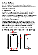 Earphone Jack Micro-USB Connector Light Distance sensor Receiver Front Camera Touchscreen Back Buttom Home Buttom App Switch Buttom Microphone Volume Button Power Button Rear Camera Flash Speaker The button moves back one step to the previous menu/page. The button returns immediately to the main screen. The button displays a menu of recently opened applications. (This interface adds a “CLEAR ALL” button) Swipe up on the home screen to open the application list 4.