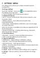 7. SETTINGS MENU The settings menu allows you to adjust cell phone System Configuration. To Change Settings: Touch the “Settings” menu icon on the Application menu. The Settings menu will open. 2. Touch a category title to view further options. 1. Network & Internet • Wi-Fi - Connect to/disconnect from wireless networks, view connection status. • Mobile network - Insert SIM card and switch data. network(2G/3G/4G) • Data usage - Enable/disable mobile data, view current usage, set mobile data limit.