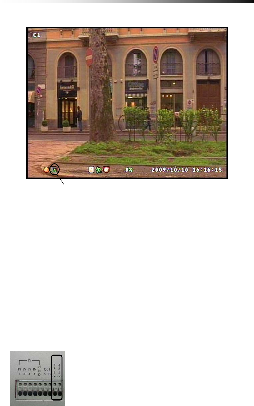 Connect the RS-485 lines to the rear terminal port of the DVR