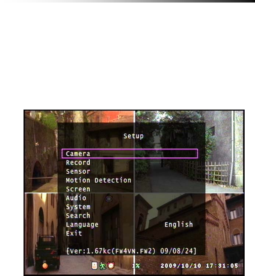 The Setup Menu can be toggled by pressing the Menu Button from the Front
