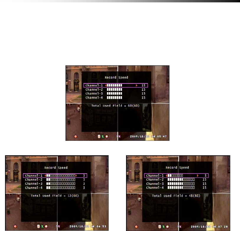 fields used by each camera according to priority.