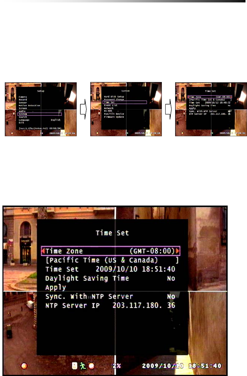 either the Front Panel or the Remote Controller. The default time zone is set to