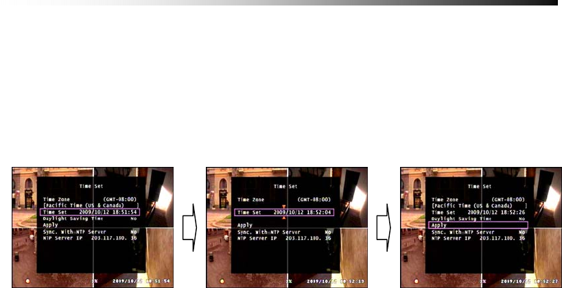 The Time can be set by pressing enter while selecting the time and adjusting the