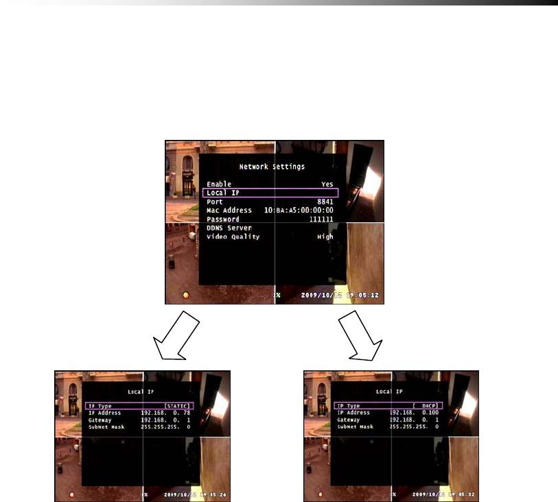 STATIC is when the IP address is set manually by the user, DHCP is when the