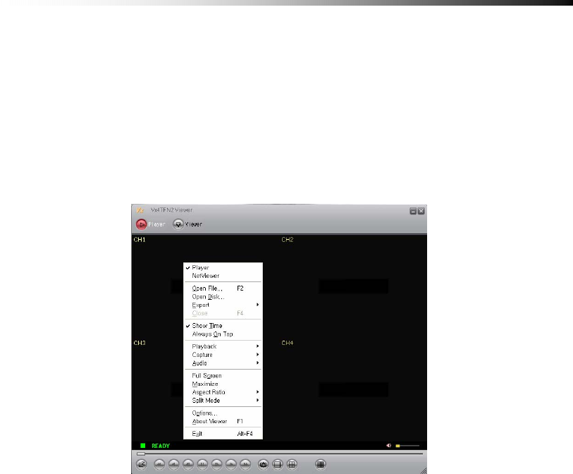 The Menu can be accessed by right clicking on the video screen of the Viewer